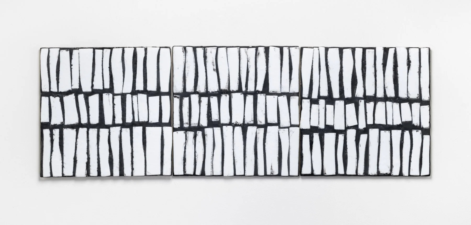 Interrupted (Crossings), 2019, Fused glass, triptych 12 x 36 inches