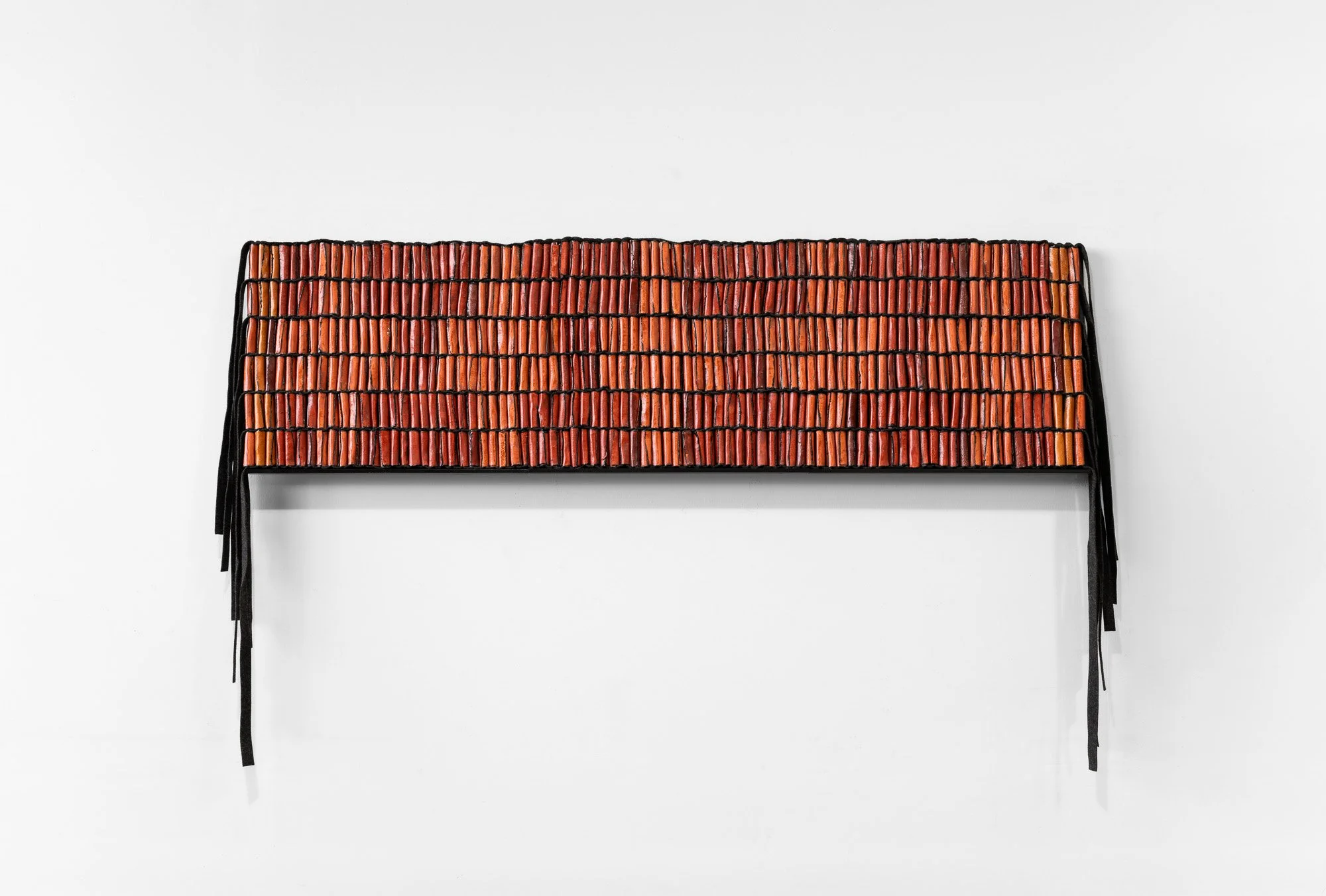 Record and Remember, 2024, Waxed cloth, felt, waxed linen, 20 x 72 x 2 inches, Photo Credit: Mario Gallucci