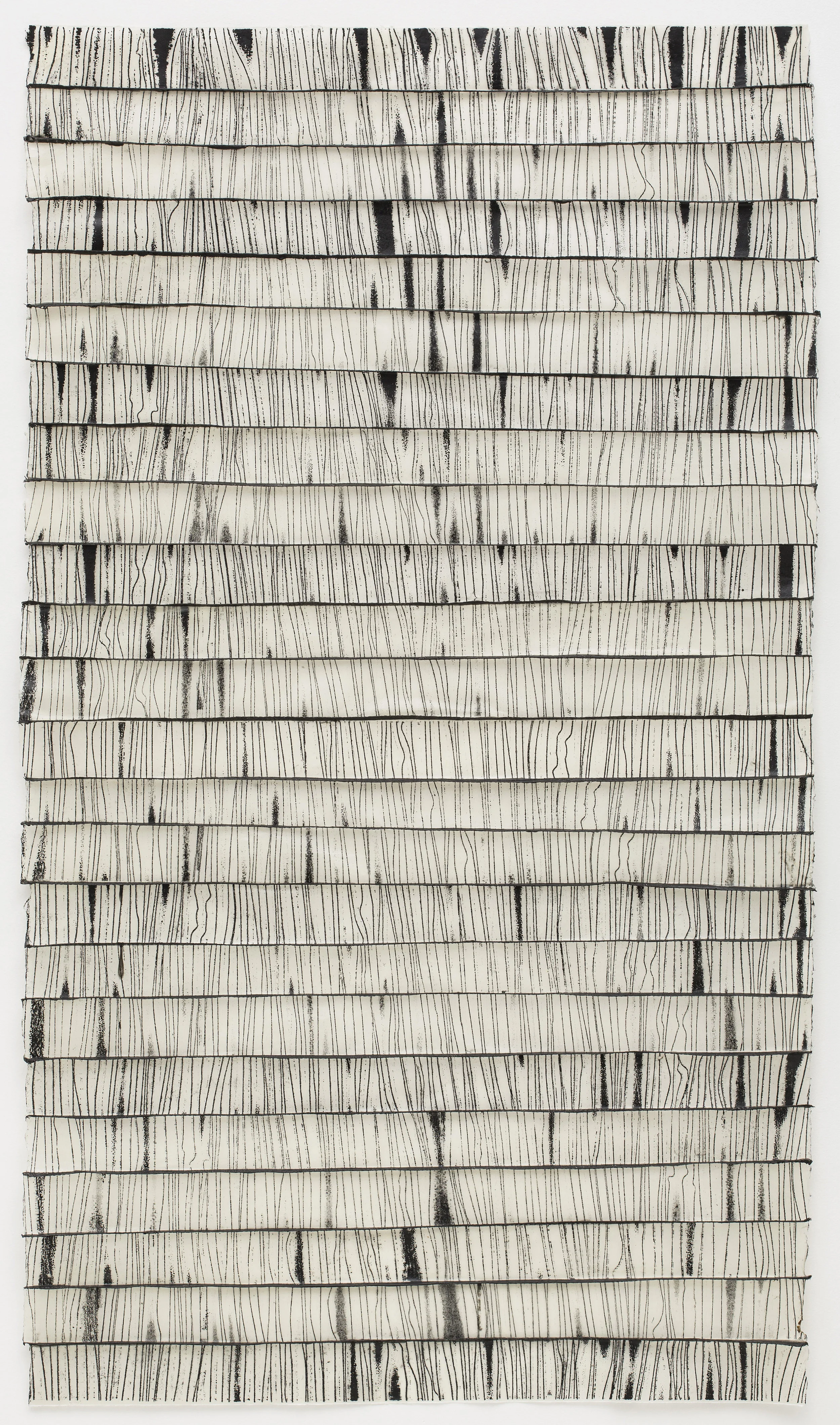 Rifts, 2014, Collagraph print on rice paper, thread, encaustic paint, 45.5" x 26" x 1"