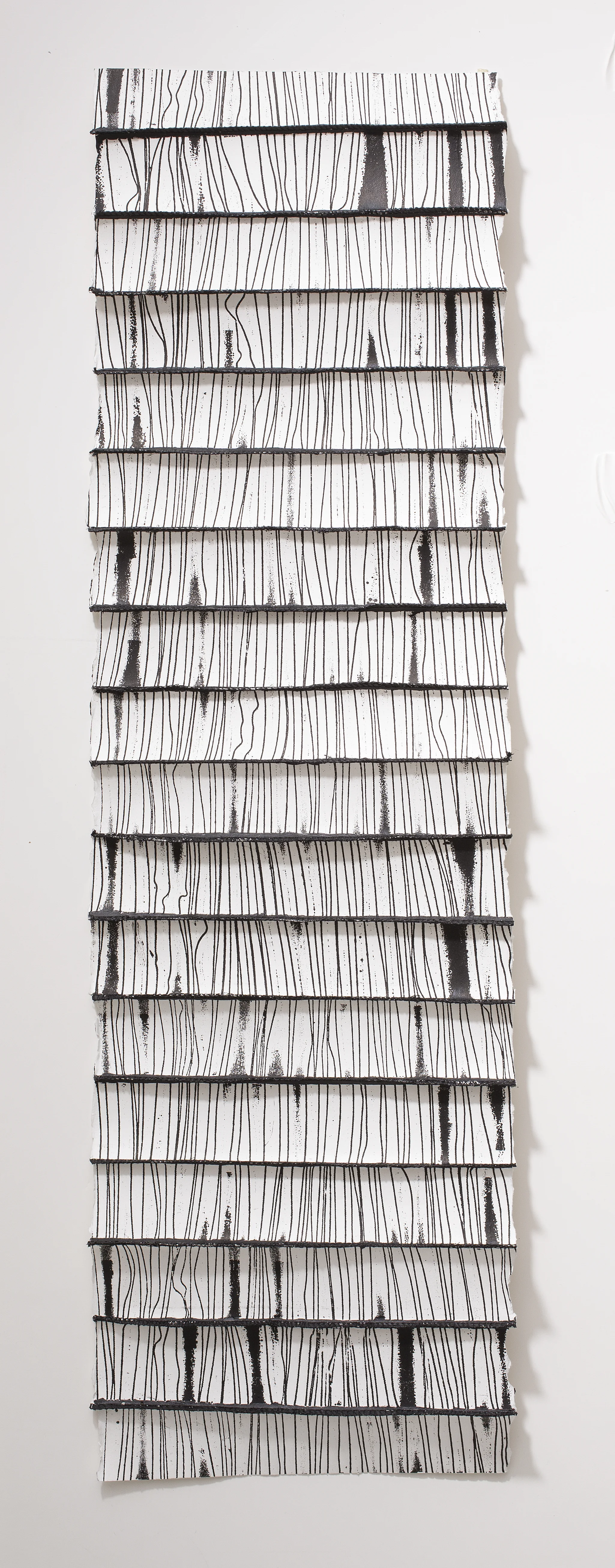 Rifts #2, 2014, Collograph print, thread, paint on Rives BFK, 38" x 11.5" x 1" (framed)