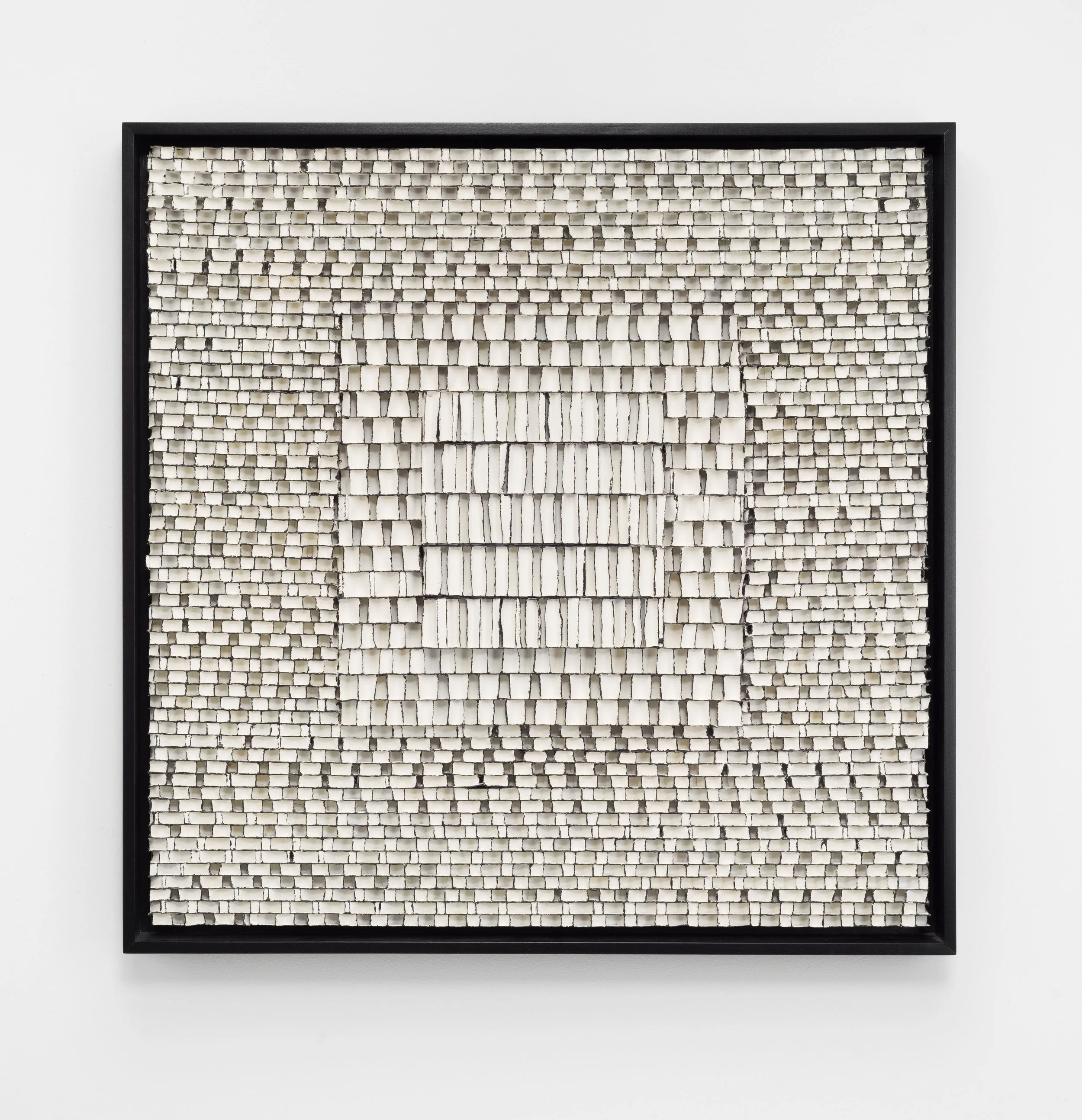 Reformed Packings #24 (Emergent Forms), 2022, Honeycomb packing sheet, paint, encaustic, 32 x 32 x 2.5 inches Photo Credit: Mario Gallucci
